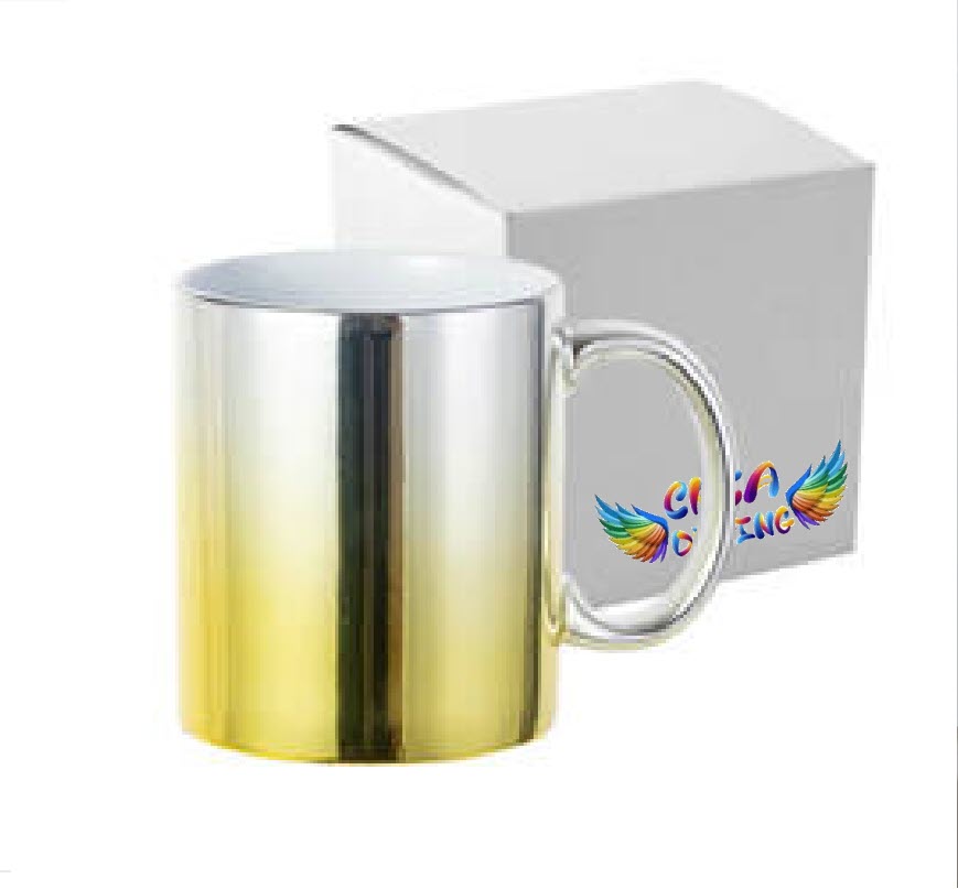 ✨ Transformez vos pauses café en moment élégant avec ce mug bi-chrome ! L’extérieur chrome brillant et l’intérieur coloré (jaune, rouge, vert et or, bleu clair ou rose clair) apportent style et originalité à vos créations personnalisées sur Creadesing. ☕💎🎨