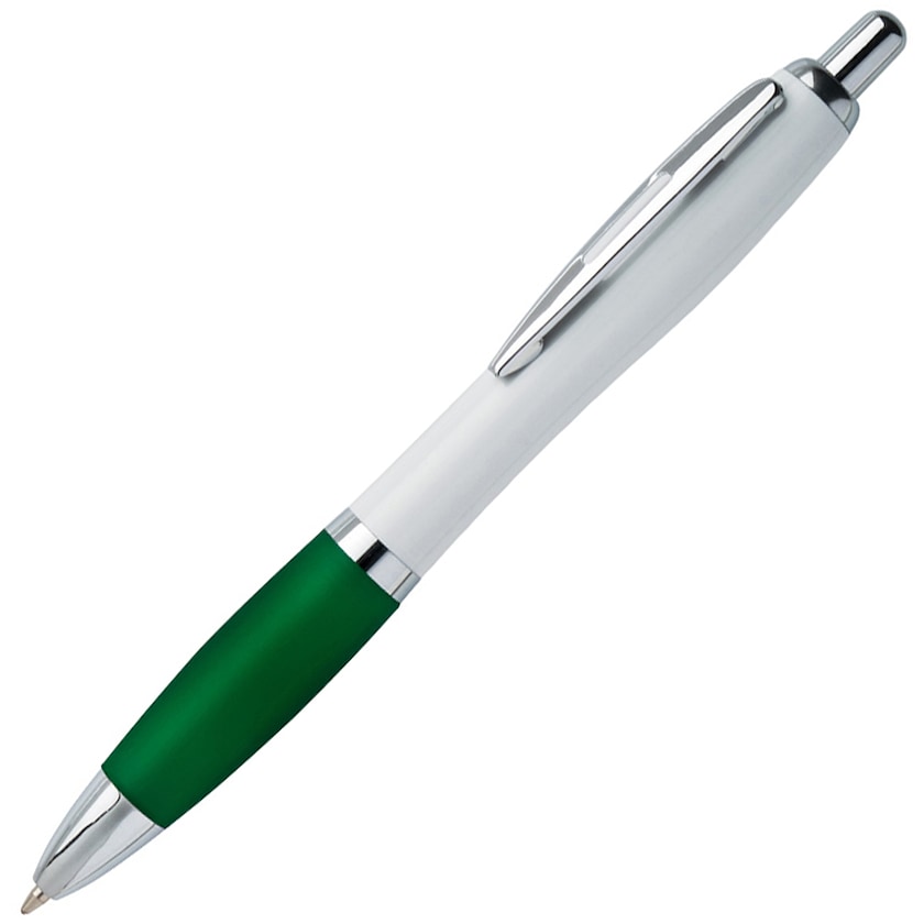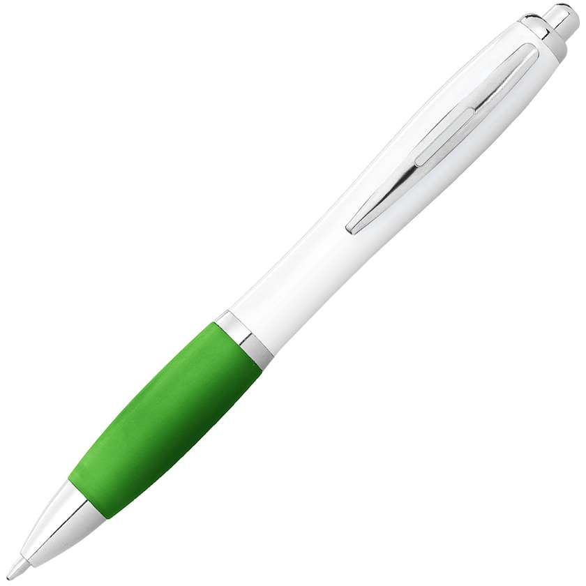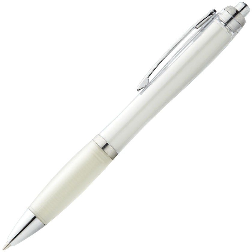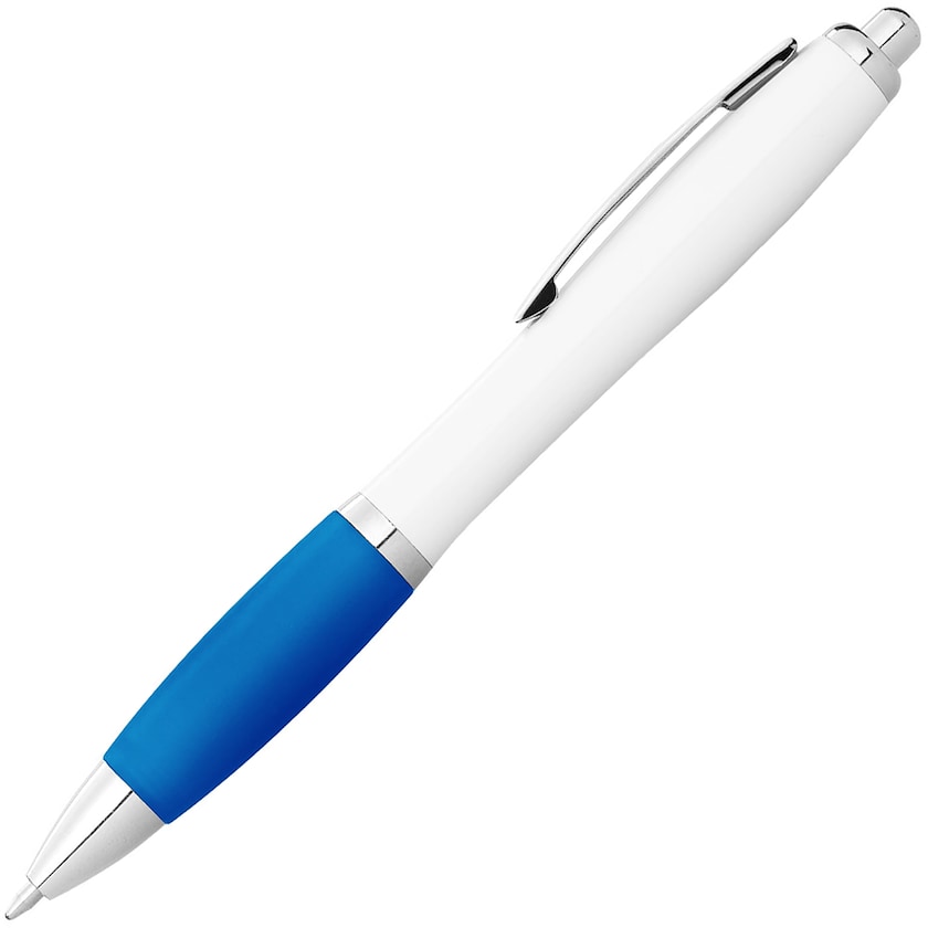 Résistence | Stylo bille solide personnalisé avec corps blanc et grip coloré. |