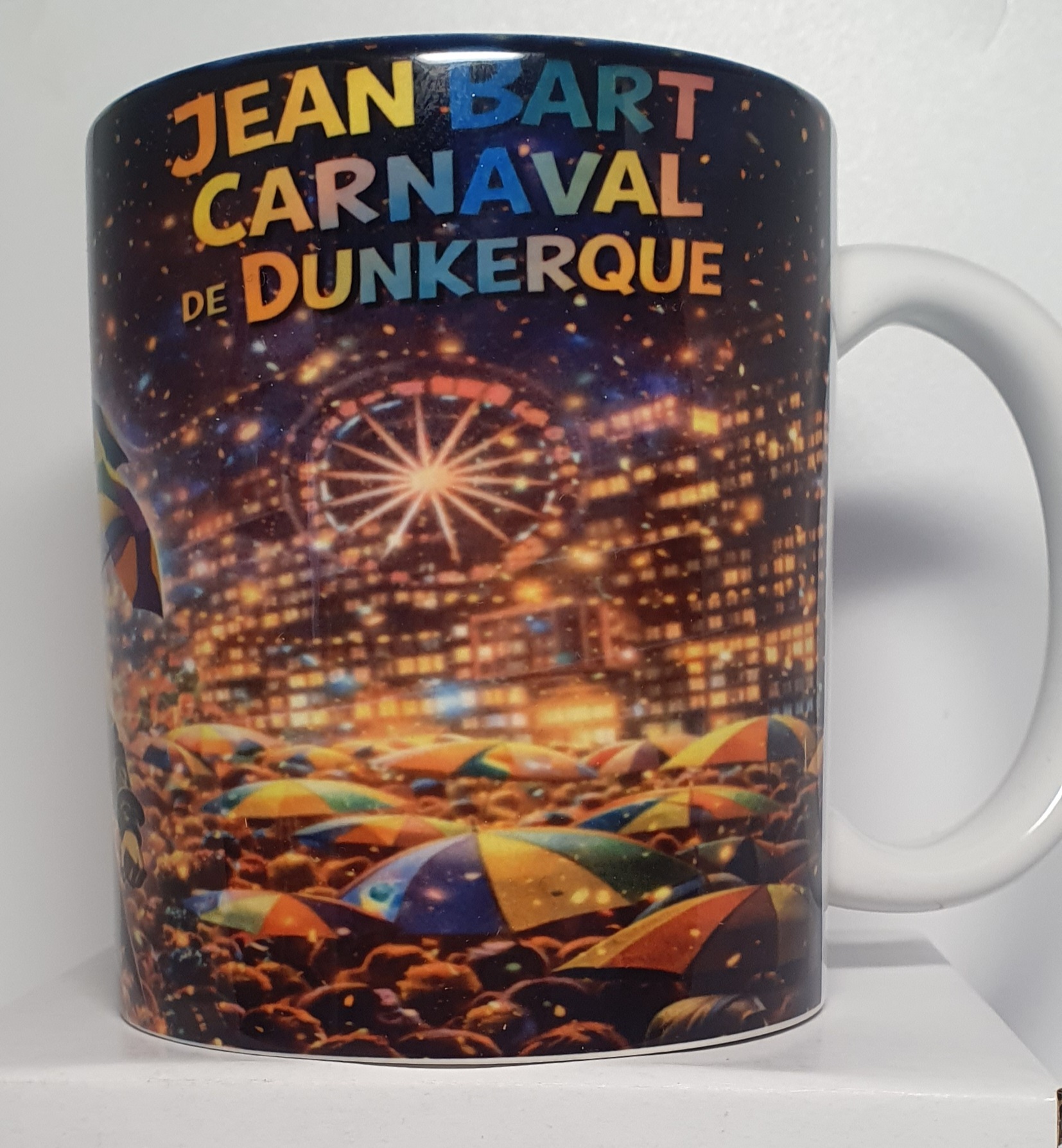 âš”ï¸ Plongez au cÅ“ur de la légende dunkerquoise ! Ce mug met en scène la célèbre statue de Jean Bart, héros et corsaire emblématique, représenté avec force et prestance. À ses côtés, un bateau corsaire majestueux fend les vagues, symbolisant l’audace, la liberté et l’histoire maritime du Nord.