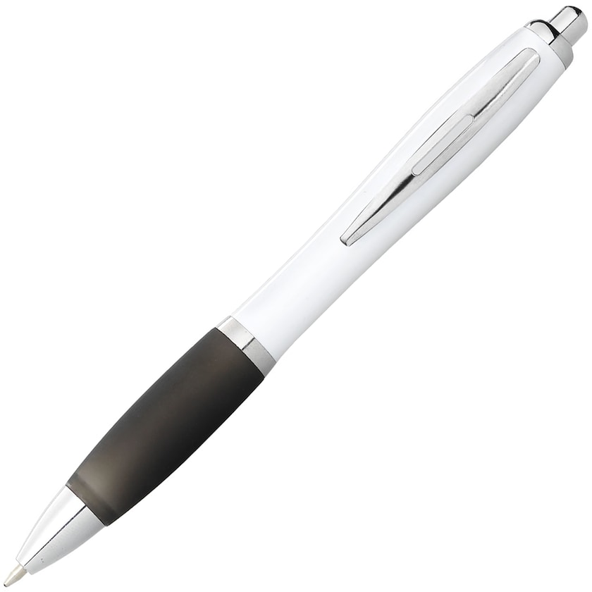 Résistence | Stylo bille solide personnalisé avec corps blanc et grip coloré. |